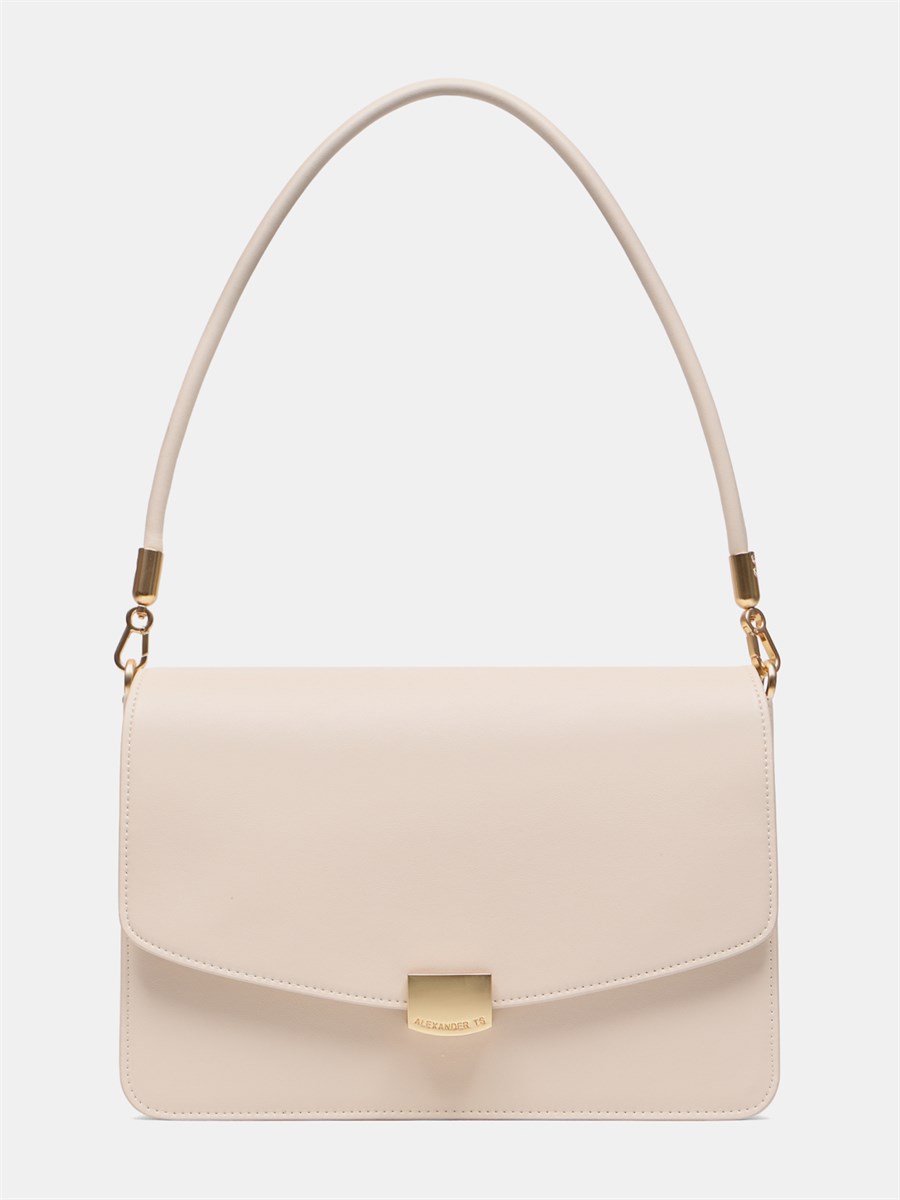 Минималистичная женская сумка из гладкой кожи в светло-бежевом цвете.